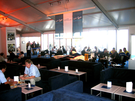 I bring this up, and wanted to show you these photos of this fantastic hospitality because if I wanted to study the drive and determination of Vettel, I had to leave the opulence of the BMW Hospitality tent and hover outside his race team’s set-up like a groupie.